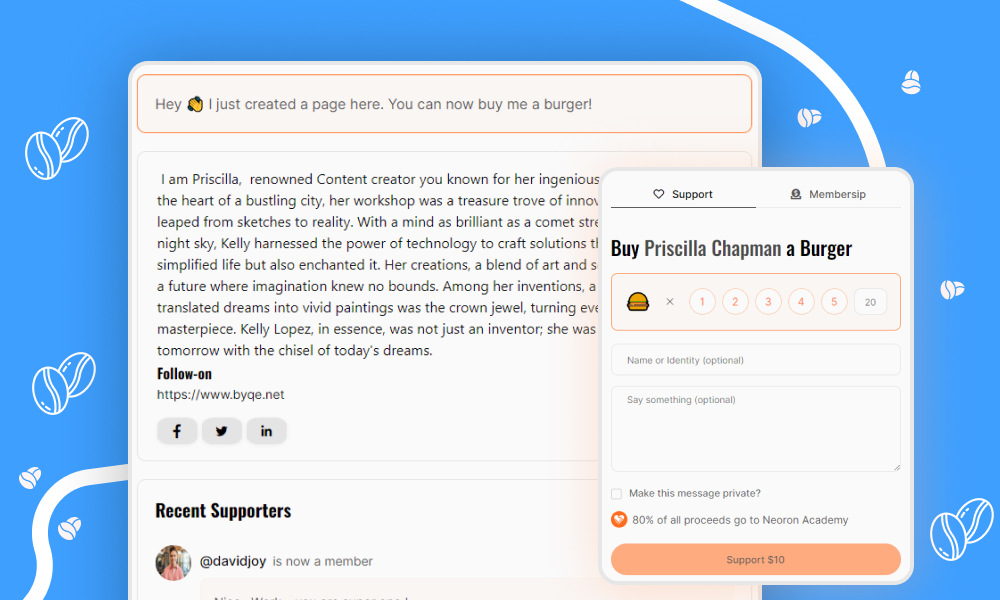'Inspireme' has been around since late Jan, 2024. We’ve been lucky enough to serve over a million creators. Here are some of the recent social media mentions to us. Want to get listed here? Share your experience with the hashtag #Inspiremeacoffee. Inspire Me a Coffee lorem ipsum dolor sit amet consectetur adipisicing elit. Quo necessitatibus quod placeat fuga sure exercitationem quae eligendi a porro ab voluptas, fugit, non autem quidem repellat quis! Libero modi quae hic exercitationem repellat, molestias tempora temporibus, saepe consectetur in placeat voluptate mollitia corrupti explicabo quia commodi eligendi, architecto obcaecati doloribus.